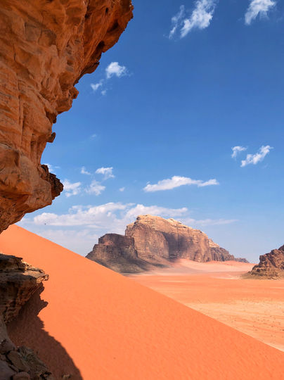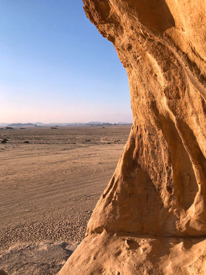 One late-October morning, I left the heat of Aqaba for the Jordanian Mountains in a 4x4 Toyota. My mother, grandmother and I were traveling through Israel, and had added Petra to the itinerary. Our guide through parts of Israel, an Israeli archaeologist, had insisted that we spend three days in Jordan, and that we take a jeep tour of Wadi Rum, a desert made world-famous in the film Lawrence of Arabia. Wadi, arabic for dry riverbed, is both name and descriptor, as you can observe the passage of water over millennia to create the region’s signature granite and sandstone cliffs marked by holes and arches, mimicking the shape of coral. Though imagining water here in the dry autumn heat is nearly impossible, the winter brings rain and flash floods.